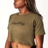 The minimalist cut features a relaxed cropped fit, clean neckline, and raw hem, perfect for layering, light movement, or simply standing still with power. The front bears a 3D silicone “Limitless” print, a tactile reminder that your strength is felt, not just seen. GHF’s signature mark rests subtly at the back.