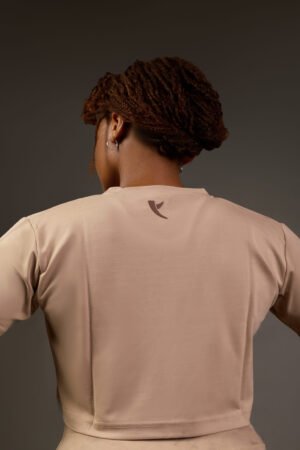 This crop tee is more than a piece, it’s a presence. Designed in a unique Cool Clay Nude tone and crafted from a silky, tightly woven cotton blend, it offers a smooth glide on the skin with a breathable, refined finish. The fabric holds its shape with intention, delivering comfort without compromise.